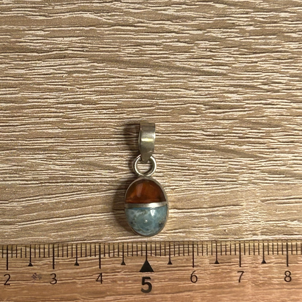Larimar-Borostyán ovális medál, hátul zárt
