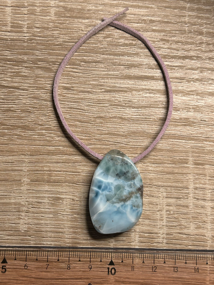 Kerekded ovális két oldalas oldalt fúrt Larimar medál